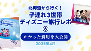 ディズニー 【費用編】北海道から5人・バケパ旅行の全費用と旅程を公開【2025年4月】 概要編でざっくりお伝えしていた旅行費用。「もっと詳しく知りたい!」という声にお応えして、航空券から現地での出費まで、全部... 2026.04.06 ディズニー旅行