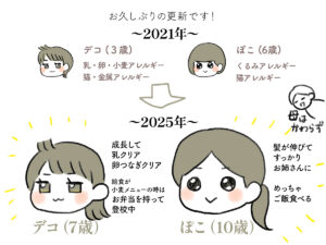 ぽことデコ2021年から2025年の変化。二人とも髪が伸びました